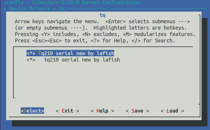 这样就能在配置界面的 Device Driver 最后一项看到新选项了,全部勾选就能把驱动编译进内核。